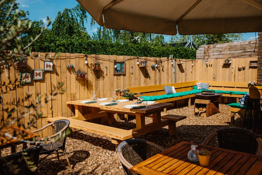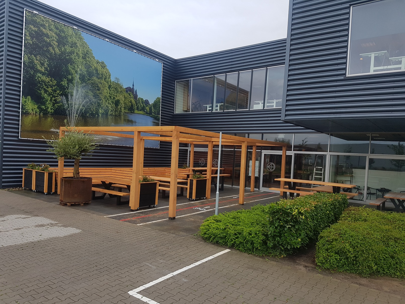 In opdracht van Stefstuinen hebben we hier verschillende buitenmeubels geplaatst. Hoge statafels, picknicktafels en een aantal loungebanken. Een heerlijke buitenruimte waar je je even kunt ontspannen.