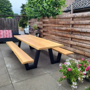 Maar het is niet alleen de kwaliteit van het hout dat deze picknicktafel zo bijzonder maakt. Het industriële ontwerp, met stalen frame geeft de tafel een unieke uitstraling die zowel modern als robuust is. Het is een perfecte combinatie van stijl en functionaliteit.