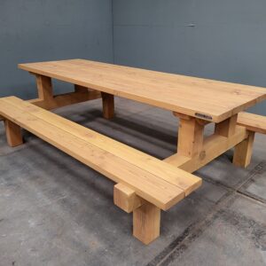 bekend om zijn robuuste kwaliteit en natuurlijke uitstraling, is deze picknicktafel ontworpen om lang mee te gaan en bestand te zijn tegen de elementen.