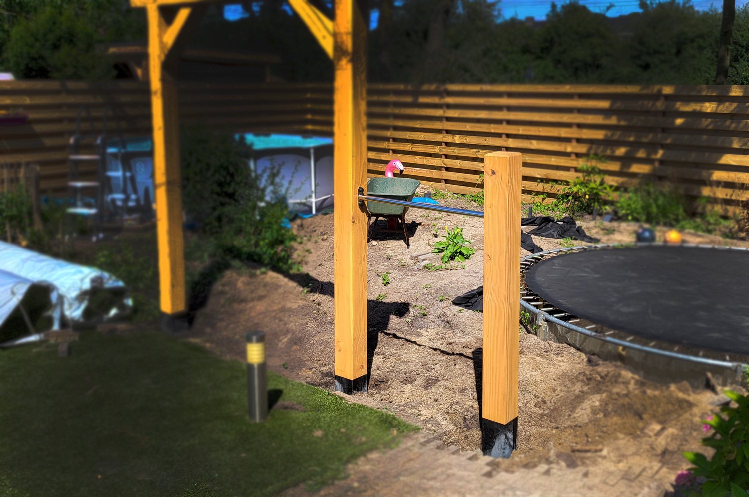 Dit is ons losse robuuste duikelrek. Bestaande uit twee geschaafde Douglas balken 11,5×11,5cm, met er tussen een duikelrek in de maat 90 cm of 120cm. De geschaafde Douglas balken gaan 90cm in de grond en blijven 1,50m boven de grond zichtbaar. Het deel van de balk dat in de grond gaat wordt extra behandeld voor duurzaamheid. Dit duikelrek biedt gegarandeerd speelplezier.